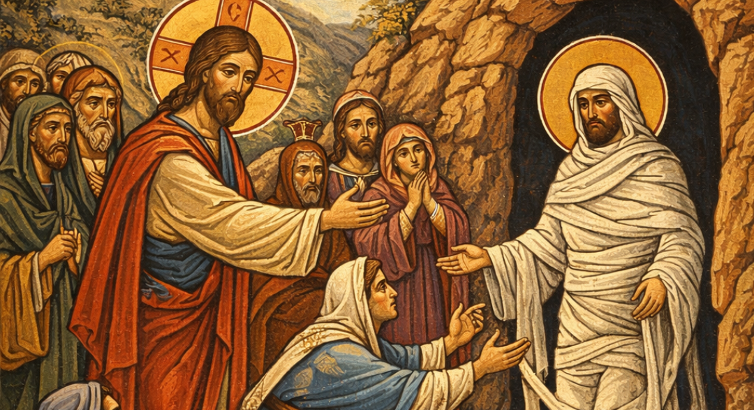 Los judíos dijeron: «¡Cómo lo amaba!». Pero algunos decían: «Este que abrió los ojos del ciego de nacimiento, ¿no podría impedir que Lázaro muriera?». Jesús, conmoviéndose nuevamente, llegó al sepulcro, que era una cueva con una piedra encima, y le dijo: «Quiten la piedra». Marta, la hermana del difunto, le respondió: «Señor, huele mal; ya hace cuatro días que está muerto». Jesús le dijo: «¿No te he dicho que si crees, verás la gloria de Dios?».